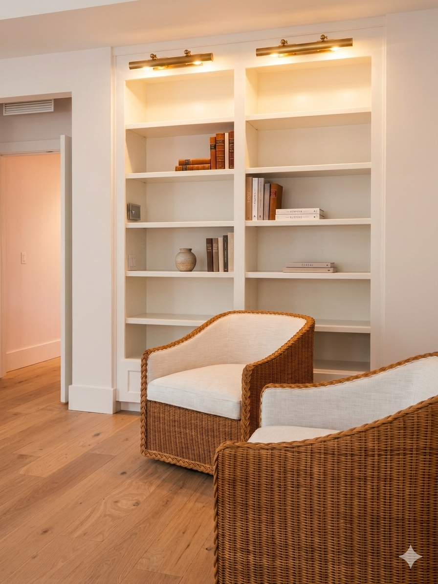 The study provides a quieter, more intimate experience within the home. Designed for focus and comfort, it balances function with warmth through tailored millwork, layered textures, and controlled lighting. It’s a space that supports both productivity and retreat.